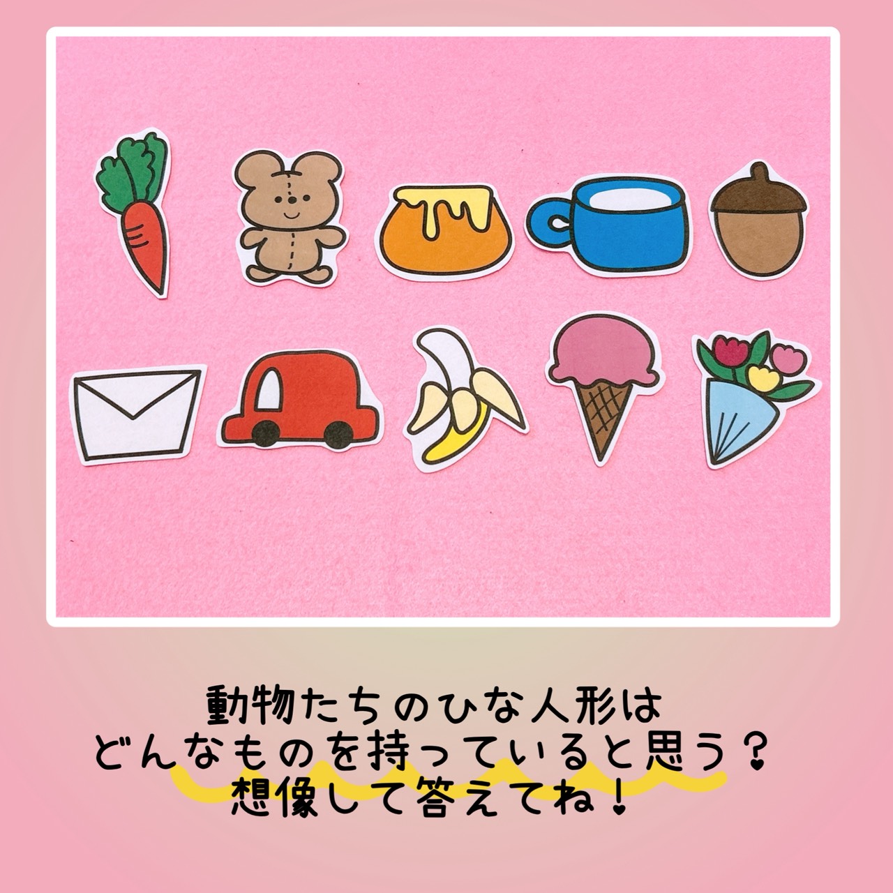 ・演じたあと、おひなさまごっこや、みんなならどんなものをおひなさまに持たせたいかなど、製作面でも発展できます。